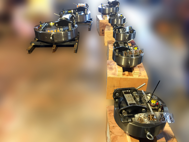 快開盲板是壓力容器快開門蓋的一種型式,廣泛應用在天然氣領域中的需經(jīng)常啟閉的設備上。常用的快開盲板分為牙嵌型、卡箍型、插扣型、鎖環(huán)型、漲環(huán)型、固定壓力環(huán)型等典型的結構,以手動操作為主。
